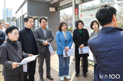 뉴스100 김동초 기자 | 안산시의회 도시환경위원회(위원장 박은정)가 제302회 임시회 중인 지난 26일 상록구 사동에 위치한 한양대정문 버스정류소를 방문해 버스정류소 개선공사(한파저감시설 설치) 사업 추진 현황을 점검했다. 이번 현장활동은 최근 정부가 발표한 ‘에너지 절약 국민행동’ 확산에 따라 자가용 이용을 줄이고 대중교통 이용을 확대하는 정책 기조에 발맞춰 시민들의 대중교통 이용 여건을 점검하고 개선 방향을 모색하기 위해 마련됐다. 아울러 심사 안건인 2026년도 제1회 추가경정예산안에 반영된 관련 사업의 적정성과 효과성을 확인하는 것이 목적이기도 했다. 현장에는 박은정 위원장과 이지화 부위원장, 송바우나, 한갑수, 김진숙 위원을 비롯해 대중교통과 관계자 등 총 14명이 참석했으며, 위원들은 버스정류소 운영 현황과 스마트쉼터 및 한파저감시설 설치·운영 실태를 확인하고 향후 추진계획에 대한 설명을 들었다. 설명에 따르면 시는 오는 4월부터 올해 말까지 사업비 5천만여원을 들여 이용 빈도가 높은 정류장을 중심으로 온열 의자를 설치하는 사업을 계획하고 1회 추경에 반영해 놓은 상태다. 버스승강장에 냉난방기, 온열의자, 무료 와이파이 등을 갖춘 스마트쉼터의 경