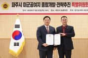 뉴스100 김동초 기자 | 경기도의회 국민의힘(대표의원 백현종)은 22일 ‘파주시 미군공여지 종합개발·전략추진 특별위원회’를 출범하고 특별위원장에 고준호(파주1) 의원을 임명했다. 이날 경기 파주시 보훈회관에서 열린 ‘경기도의회 국민의힘 파주시 미군공여지 종합개발·전략추진 특별위원회’ 출범식에는 백현종 대표의원과 고준호 특별위원장을 비롯해 국민의힘 소속 도의원들이 다수 참석했다. ‘경기도의회 국민의힘 파주시 미군공여지 종합개발·전략추진 특별위원회’는 파주시 소재 미군 반환 공여지 개발 사업을 체계적으로 관리하고 효과적으로 추진하기 위해 출범했다. 현재 파주에는 과거 미군 기지로 사용됐다가 반환된 캠프 하우즈(조리읍), 에드워즈(월롱면), 스탠턴(광탄면), 자이언트(문산읍), 게리오웬(문산읍), 그리브스(장단면) 등 총 6곳의 공여지가 있으며, 총 면적 기준 경기 북부에서 가장 넓은 부지로 알려져 있다. 경기도 및 파주시 차원에서 개발 사업을 추진 중인 가운데 부지별로 사업비 확보, 군 협의 절차, 개발 방식 확정 등의 과제가 남아 있는 상황이다. ‘경기도의회 국민의힘 파주시 미군공여지 종합개발·전략추진 특별위원