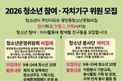 뉴스100 김동초 기자 | (재) 군포시청소년재단 군포시청소년지역센터 광정동청소년문화의집은 2026년을 맞아 다양한 청소년 참여ㆍ자치기구를 모집한다고 밝혔다. 이번 모집은 청소년운영위원회, 청소년봉사단, 청소년동아리 등 총 3개 분야로 진행되며, 청소년의 자율성과 주도성을 기반으로 한 참여 활동을 중심으로 운영된다. 청소년운영위원회 ‘씨밀레’는 광정동청소년문화의집 운영에 직접 참여하는 공식 청소년 참여기구로, 정기회의와 시설·프로그램 모니터링, 의견 제안 및 간담회 등을 통해 청소년의 목소리를 정책과 운영에 반영하는 역할을 수행한다. 모집 대상은 9세부터 24세까지의 청소년 15명이다. 청소년봉사단 ‘바이크’는 환경과 지역사회를 주제로 한 실천 중심 봉사활동 조직이다. 캠페인 운영, 지역 행사 지원, 봉사 기획 활동 등을 통해 나눔의 가치를 실현하며, 9세부터 19세까지 청소년 20명을 모집한다. 또한 청소년동아리 ‘놀아청’은 공연, 체험, 기획 활동 등 관심 분야를 중심으로 자율적으로 구성·운영되는 조직이다. 9세부터 24세까지의 청소년으로 구성된 동아리 10팀을 모집하며