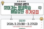 뉴스100 김동초 기자 | 화성특례시는 시민의 다양한 학습 수요를 반영한 맞춤형 평생학습 프로그램 운영을 위해 ‘2026년 상반기 찾아가는 평생학습 배달강좌’를 추가 모집한다고 밝혔다. ‘찾아가는 평생학습 배달강좌’는 시민이 원하는 학습 주제와 장소, 시간, 강사를 직접 선택해 운영하는 학습자 중심 프로그램으로, 시민들이 자발적으로 학습공동체를 구성해 참여할 수 있는 것이 특징이다. 이를 통해 시민들의 다양한 학습 욕구를 충족하고 평생학습 문화 확산에 기여할 것으로 기대된다. 이번 추가 모집은 3월 23일부터 3월 27일까지 진행되며, 화성시민(성인) 또는 화성시 소재 사업장에 근무하는 직장인으로 구성된 7인 이상의 학습모임이면 신청할 수 있다. 모집 규모는 병점권역 3개 학습모임이다. 선정된 학습모임에는 최대 20시간의 강사비가 지원되며 수강료는 무료다. 다만 교재비와 재료비는 학습자가 부담해야 한다. 강좌 운영 기간은 4월 13일부터 7월 3일까지다. 신청은 화성시 시민강사 통합정보시스템에 등록된 배달강사와 강좌 일정 및 계획을 사전에 협의한 후 신청서를 작성해 이메일 또는 화성시평생학습관으로