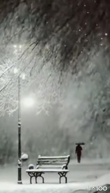 눈 내리는 겨울 밤 공원의 가로등 불빛 아래, 그녀는 어디로 가는 걸까?