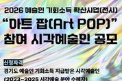 뉴스100 김동초 기자 | 경기도와 경기문화재단이 “2026 예술인 기회소득 확산사업(전시)“의 일환으로 진행하는 “아트 팝(Art POP)” 참여 시각예술인을 공개 모집한다. ‘2026 예술인 기회소득 확산사업(전시)’은 2023년부터 2025년까지 '경기도 예술인 기회소득'을 지원받은 시각예술인에게 지속적인 예술 창작 발표의 기회를 제공하고, 도민에게는 문화예술 향유 기회를 확대하기 위해 마련된 행사다. “아트 팝”의 신청 대상은 2023년부터 2025년까지 '경기도 예술인 기회소득'을 지원받은 시각예술 분야의 경기도 거주 예술인이다. 3년 동안 1회라도 지원을 받았다면 신청할 수 있고, 기존 “예술인 기회소득 페스티벌(전시)”에 참여한 이력이 있어도 신청 가능하다. 신청을 원하는 예술인은 국가문화예술지원시스템(NCAS)을 통해 지원신청서, 예술인 기회소득 지급 사실 증빙 자료 등을 제출하면 된다. 특히 이번 “아트 팝”에는 회화, 조각, 공예, 설치, 미디어, 일러스트, 웹툰, 그래피티 아트, 디지털 페인팅 등 모집 분야를 확대해 보다 다양한 시각예술 분야의 예술인들이 참여할 수 있도록 했다.