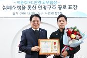 뉴스100 김동초 기자 | 안양시민프로축구단 FC안양의 서준석 의무팀장이 위급한 상황에서 신속한 심폐소생술로 시민의 생명을 구한 공로로 안양시장 표창을 받았다. 안양시는 9일 오후 4시10분 시청 3층 접견실에서 표창 수여식을 열고 서 팀장에게 표창을 수여했다. 서 팀장은 지난해 12월 26일 안양종합운동장 인근에서 점심식사를 하던 중 식당 앞에서 심정지로 쓰러진 시민을 발견하고 즉각 심폐소생술(CPR)을 실시했으며, 구조대가 도착할 때까지 침착하게 응급조치를 이어가 소중한 생명을 구하는 데 결정적인 역할을 했다. 2014년부터 FC안양에 재직 중인 서 팀장은 평소 선수단의 건강과 안전을 책임지는 의료지원 업무를 수행해 왔으며, 이번 위급한 상황에서도 전문성과 사명감을 바탕으로 인명 구조에 나서 사회에 귀감이 되는 행동을 보여줬다. 서 팀장은 “현장에서 함께 신고하고 도움을 준 동료들 덕분에 소중한 생명을 지킬 수 있었다”며 “앞으로도 그라운드 안에서는 선수들의 건강을, 그라운드 밖에서는 시민의 생명을 지키는 데 최선을 다하겠다”고 소감을 밝혔다. 최대호 안양시장은 “갑작스러운 상황에서