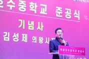 뉴스100 김동초 기자 | 의왕시 백운밸리 지역에 신설된 백운호수중학교의 준공식이 24일 백운호수중학교 체육관에서 개최됐다. 의왕백운프로젝트금융투자(주)(의왕백운PFV(주)) 주최로 열린 이날 준공식에는 김성제 의왕시장, 임태희 경기도 교육감, 김학기 의왕시의회 의장과 도·시의원, 의왕백운피에프브이(주) 김양묵 대표이사, 의왕백운밸리에이엠시(주) 이성훈 대표이사 등 주요 내빈과 지역주민 400여 명이 참석해 자리를 빛냈다. 이번 준공식은 학교 설립을 위해 힘써 온 관계자와 지역 주민들이 한 자리에 모여 그동안의 결실을 함께 나누고 축하하는 뜻깊은 행사로 마련됐다. 의왕시 백운밸리 일대는 주거단지 조성과 함께 인구가 지속적으로 증가하고 있는 지역으로, 그간 중학교 부재에 따른 학생들의 원거리 통학 문제가 꾸준히 제기돼 왔다. 이에, 시는 ‘중학교 신설’이라는 지역 숙원사업 해결을 위해 다각적인 방안을 검토해 왔으며, 2023년 11월 의왕시·군포의왕교육지원청·의왕백운피에프브이(주) 간 3자 업무협약을 체결함으로써 학교 설립이 본격 추진됐다. 협약을 통해 시에서는 백운호수 초등학교 인접 유치원 부지를 무상 제공하고, 군포의왕교육지원청은 학교 행정 전반을 지원하기