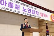뉴스100 김동초 기자 | 의왕시가 (사)대한노인회 의왕시지회 부설 아름채노인대학이 3월 24일 아름채노인대학 입학식을 개최했다고 밝혔다. 아름채노인복지관에서 열린 이번 행사에는 입학생 164명의 어르신이 참석해 배움의 새로운 시작을 함께 축하했으며, 입학식은 어르신들의 밝은 웃음과 설렘 속에 따뜻한 분위기에서 진행됐다. 입학식에 참석한 어르신들은 앞으로 진행될 다양한 교육과 문화 활동에 대한 기대감을 나타내며 노인대학에서의 새로운 출발을 맞이했다. 또한, 노인대학을 통해 교양 수준을 높이고, 새로운 친구들과 소통하며 더욱 활기찬 노후를 보내겠다는 기대감을 나타냈다. 아름채노인대학은 어르신들의 건강한 사회참여와 평생학습 기회 제공을 위해 건강·교양·문화 등 다양한 교육 과정을 운영할 예정이며, 이 과정에서 어르신들은 일상에 활력을 더하는 값진 경험을 하게 될 것으로 기대된다. 김성제 시장은 “아름채노인대학에서 다양한 교육과 함께 현장 체험 학습도 즐기시면서 건강한 노후를 마음껏 누리시길 바란다”고 말했다. [뉴스출처 : 경기도 의왕시]