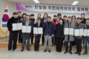 뉴스100 김동초 기자 | 광주시 탄벌동의 새로운 자치 시대를 이끌 제13기 탄벌동 주민자치위원회가 공식 출범했다. 탄벌동 주민자치위원회는 13일 탄벌동 행정복지센터에서 월례회의를 열고 제13기 위원회의 본격적인 활동을 시작했다. 이번 위원회는 기존 ‘탄벌·송정동 주민자치위원회’에서 송정동이 분리된 이후, 탄벌동의 지역적 특성과 주민 수요를 반영해 새롭게 구성된 첫 독립 주민자치기구다. 이날 회의에서는 제13기 위원장 선출이 주요 안건으로 상정됐으며 위원들의 투표를 통해 이영호 위원이 위원장으로 선출됐다. 새로 선출된 위원장은 앞으로 탄벌동 주민자치 활성화와 지역 공동체 발전을 이끌 중심 역할을 맡게 된다. 이영호 위원장은 취임 소감을 통해 “탄벌동만의 정체성을 확립해야 하는 중요한 시점에 위원장을 맡게 돼 책임감을 느낀다”며 “19명의 위원들과 함께 주민들의 다양한 의견을 폭넓게 수렴하고 탄벌동의 특색을 살린 실질적인 자치 사업을 추진하겠다”고 밝혔다. 이에 대해 박진하 동장은 “제13기 주민자치위원회 출범을 계기로 주민 참여와 소통이 더욱 활성화되길 기대한다”며 “주민자치가 현장에서 뿌리내릴 수