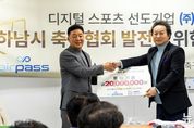 뉴스100 김동초 기자 | 디지털 스포츠 솔루션 선도기업 ㈜에어패스가 하남시 체육 발전의 근간을 마련하고 지역사회와의 실질적인 상생을 실천하기 위해 하남시 축구협회에 후원기금을 전달했다고 밝혔다. ㈜에어패스는 지난 10일 진행된 후원기금 전달식을 통해 하남시 축구협회에 성금을 기탁하며 지역 체육계에 활력을 불어넣었다. 이번 후원은 단순한 일회성 지원을 넘어, 하남시 축구 동호인들의 활동 저변을 넓히고 미래의 주역인 유소년 축구 꿈나무들이 보다 안정적인 환경에서 훈련에 매진할 수 있는 육성 토대를 조성하기 위해 마련됐다. ㈜에어패스와 하남시 축구협회는 이번 전달식을 기점으로 지역 내 축구 문화 확산과 체육 인프라 강화를 위한 다각적인 협업 체계를 구축하고, 긴밀한 파트너십을 이어가기로 약속했다. 이날 행사에는 이현재 하남시장을 비롯하여 하남시 축구협회 주요 관계자들이 대거 참석해 자리를 빛냈다. 참석자들은 지역 체육 발전을 위한 민관 협력의 중요성에 깊이 공감하며, 기업의 사회적 책임 활동이 지역 공동체 활성화에 미치는 긍정적인 의미를 다시 한번 되새겼다. 임종호 ㈜에어패스 대표이사는 이 자리에서 “