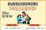 뉴스100 김동초 기자 | 하남시는 민선 8기 공약사항인 ‘심리상담 프로그램 강화’의 일환으로 청소년 가정의 정서적 안정과 건강한 가족관계 형성을 지원하기 위해 ‘우리가족심리지원사업 시즌Ⅱ’를 확대 운영하고 있다고 밝혔다. 이번 사업은 양육 과정에서 겪는 스트레스와 부모·자녀 간 소통 어려움을 겪는 가정을 지원하기 위해 마련된 것으로, 부모의 정서 회복을 시작으로 양육 역량 강화와 가족 관계 개선까지 이어지는 통합형 심리지원 프로그램이다. ‘우리가족심리지원사업 시즌Ⅱ’는 지난해 운영된 가족심리지원사업의 높은 호응을 바탕으로 확대된 사업으로, 보다 다양한 상담과 프로그램을 통해 실질적인 도움을 제공하는 데 중점을 두고 있다. 먼저 부모(양육자)를 위한 5회기 개인상담 ‘부모, 나로 회복하는 시간’은 3월 16일부터 매주 월요일 운영되고 있으며, 부모가 자신의 감정을 이해하고 양육 과정에서의 스트레스를 완화할 수 있도록 지원한다. 이를 통해 부모의 정서적 안정이 자녀의 심리적 안정으로 이어질 수 있도록 돕는다. 또한 부모 집단상담 ‘공감으로 연결되는 부모의 시간’은 상반기(5월)와 하반기(10월)에 각