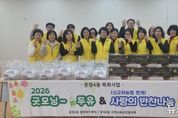 뉴스100 김동초 기자 | 파주시 운정4동은 지난 25일 올해 특화사업인 '2026 굿모닝 두유+사랑의 반찬 나눔’행사를 개최했다. 이번 행사는 지난해에 이어 확대·개선하여 운영하는 ‘굿모닝~두유!’사업의 본격적인 출발점이자, 지난 1월부터 이어져 온 ‘사랑의 반찬 나눔’사업의 세 번째 행사다. ‘굿모닝 두유’사업은 2026년 2~12월까지 11개월간 진행되며, 65세 이상 독거노인 복지 취약가구 25명을 대상으로 한다. 지난해에는 70세 이상 어르신 20명을 지원했으나, 올해는 대상자를 확대해 더 많은 어르신들에게 두유를 공급한다. 또한 포장 가방 제작으로 인한 일회용품 발생 문제를 개선하기 위해, 올해는 포장된 상품을 그대로 구매해 월 1회 배부하는 방식으로 변경해 환경성과 효율성을 높였다. 이번 사업은 파주시 지역사회보장협의체와 공동모금회의 지원으로 추진되며, 민간 자원과 공공 행정, 주민 조직이 함께 참여하는 협력 모델로 운영된다. 특히 운정4동은 신교하농협과 협력해 ‘사랑의 반찬 나눔’사업을 함께 추진하며 두유와 반찬을 동시에 지원해 품목을 보강하고, 민관 협력을 한층 강화했다. 지역사회보