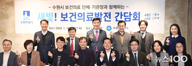 ‘새빛! 보건의료발전 간담회’는 수원시 의사회·치과의사회·한의사회·약사회·간호사회 회장, 아주대학교병원·가톨릭대학교 성빈센트병원·동수원병원·경기도의료원 수원병원·윌스기념병원·화홍병원 관계자, 국민건강보험공단 수원 동부·서부 지사장, 수원시 4개 구 보건소장 등 수원시 의약 단체·기관장 17명으로 이뤄진 상시 민관협력체계다.