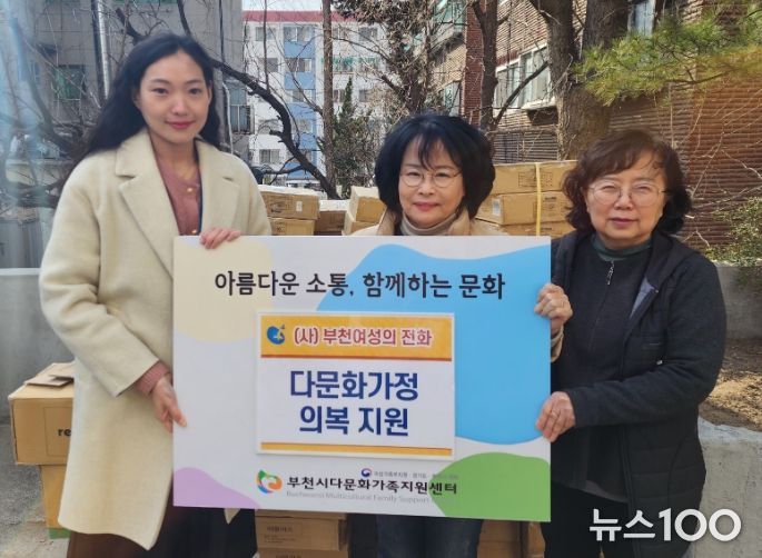 뉴스100 김동초 기자 | 부천시다문화가족지원센터는 (사)부천여성의전화와 지난 20일 다문화가족을 위한 ‘의복 지원’전달식을 진행했다.