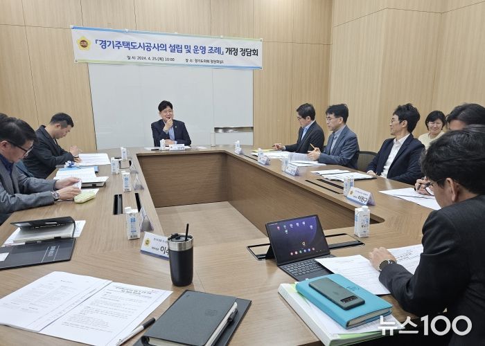 뉴스100 김동초 기자 | 경기도의회 도시환경위원회 김태형 의원(더불어민주당, 화성5)이 25일 경기도의회 정담회실에서 '경기주택도시공사의 설립 및 운영 조례' 개정을 위한 정담회를 개최했다.