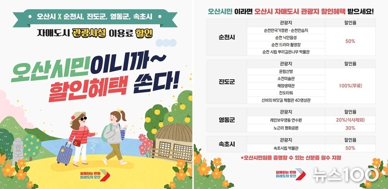오산시와 국내 자매결연을 맺고 있는 도시들이 오산시민 방문 시 시민들에게 다양한 관광시설 할인 혜택을 제공하고 있다고 1일 밝혔다.