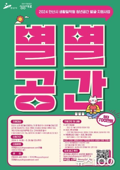 뉴스100 김동초 기자 | 안산시는 지역 청년들의 활동이 안산 곳곳에서 활발히 이루어질 수 있도록 민간 거점 공간을 발굴해 지원하는 생활밀착형 청년 공간 ‘별별 공간’의 참여 사업장을 모집한다고 20일 밝혔다.