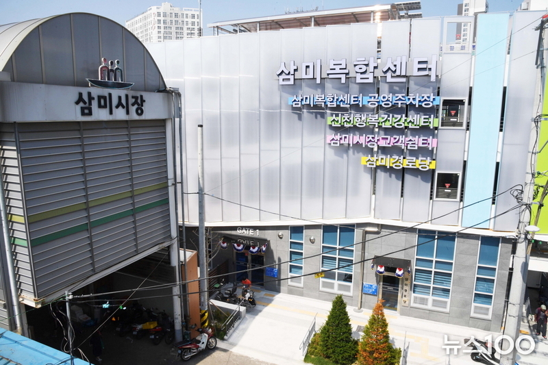 ▲삼미시장 바로 옆에 들어선 삼미복합센터로 주차난이 크게 해소됐다.
