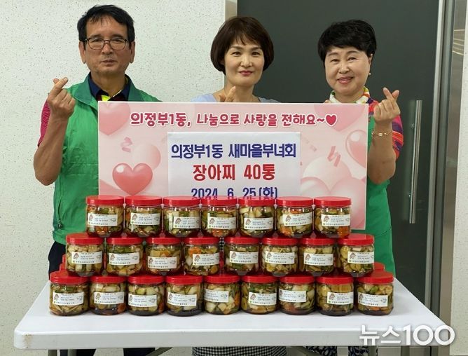 뉴스100 김동초 기자 | 의정부시 의정부1동주민센터는 6월 25일 의정부1동 새마을부녀회가 취약가구에 전달할 수제 장아찌 40통을 기부했다고 밝혔다.