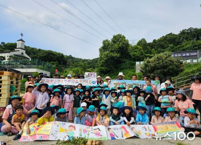 뉴스100 김동초 기자 | 오포능평어린이집 원아와 교사 및 학부모, 능평동 행정복지센터 직원 등 100여명은 지난 25일 능평로 116-7 일원에서 감자 수확 체험행사를 가졌다.