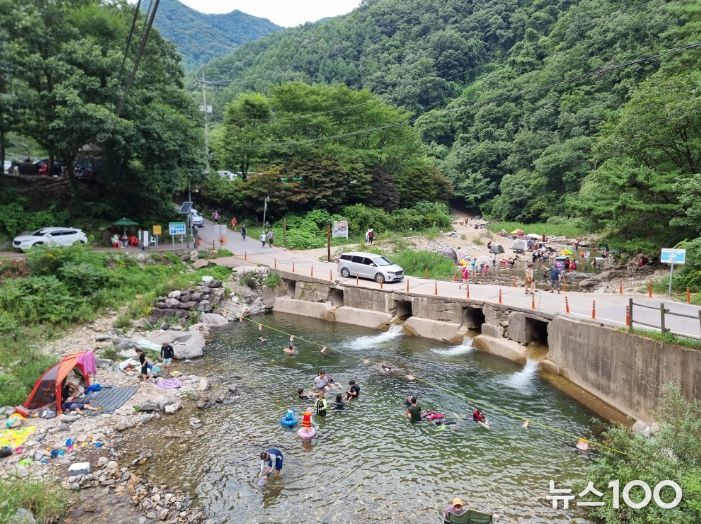 8개 물놀이 안전초소 설치 지역은 승안1교(가평군 설치) 무송암, 버스종점, 용천교, 펜션마을, 정곡교, 탁영뢰, 중산리 마을 입구다. 물놀이 위험구역은 용천교, 펜션마을, 중산리 마을 입구 등 3곳이다.