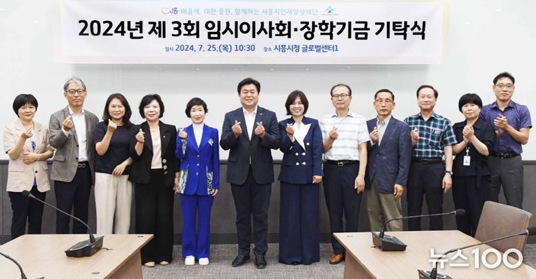 뉴스100 김동초 기자 | (재)시흥시인재양성재단은 지난 25일 시청 글로벌센터에서 ‘2024년 제3회 임시이사회와 장학기금 기탁식’을 열었다.