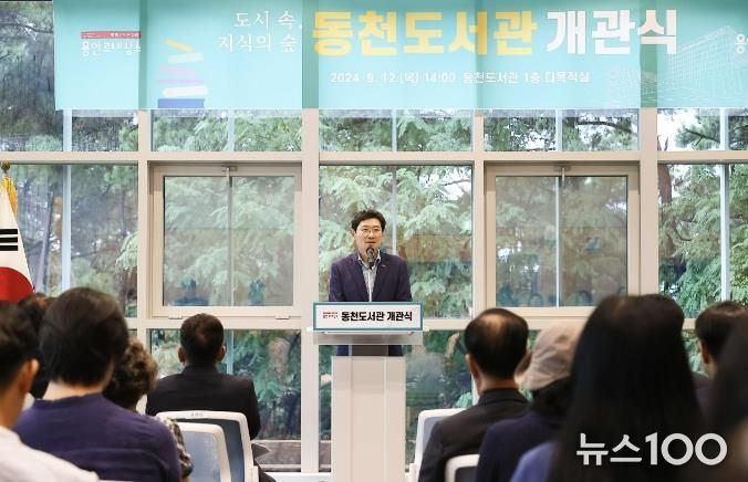 뉴스100 김동초 기자 | 용인특례시는 12일 오후 이상일 시장이 참석한 가운데 ‘도시 속 지식의 숲 동천도서관’ 개관식을 갖고 이날부터 도서관 본격 운영에 나섰다고 13일 밝혔다.