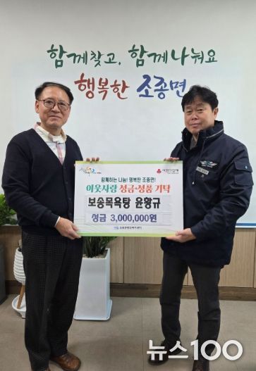 뉴스100 김동초 기자 | 가평군 조종면 소재 보송목욕탕 윤황규 대표는 지난 5일 조종면행정복지센터를 방문해 성금 300만원을 기탁했다.