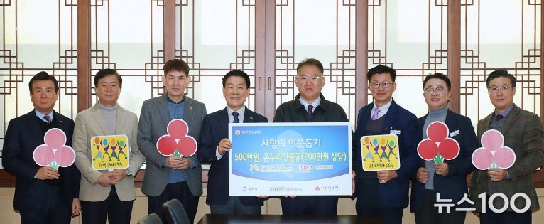 뉴스100 김동초 기자 | (사)포승경영자협의회와 한국산업단지공단은 지난 3일 평택시청 대외협력실에서 평택행복나눔본부에 성금 500만 원과 상품권 200만 원을 전달했다.
