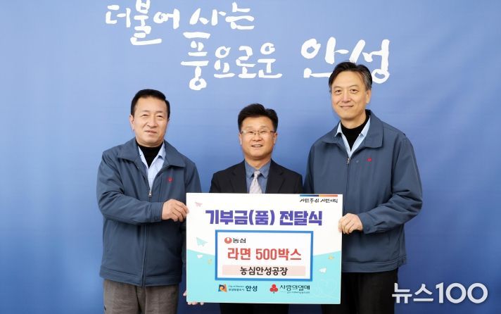 뉴스100 김동초 기자 | 안성시는 지난 12월 5일 ㈜농심 안성공장과 경기도0세아전용어린이집 안성지역이 추운 겨울을 맞아 어려운 이웃을 위해 따뜻한 나눔을 실천했다고 밝혔다.