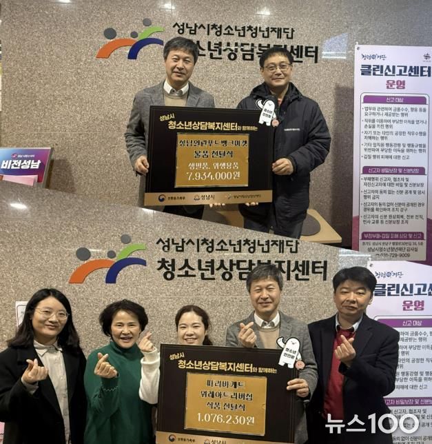 뉴스100 김동초 기자 | 성남시청소년청년재단 성남시청소년상담복지센터는 12월 18일, 성남열린푸드뱅크마켓, 파리바게트 위례아트리버점과 물품 전달식을 진행했다고 밝혔다.