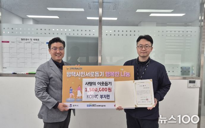 뉴스100 김동초 기자 | ‘(주)KCENC 사내동호회 부지런’은 지난 3월 19일 평택시 관내 어려운 이웃들을 돕기 위해 평택행복나눔본부에 성금 150만 원을 전달했다. 이번 기부금은 회원들이 러닝, 등산, 헬스 등 다양한 운동을 통해 소모한 열량(칼로리)을 기부금으로 환산, 전환해 적립한 금액을 모아 마련됐다.