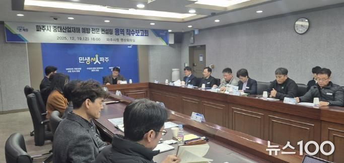 뉴스100 김동초 기자 | 파주시는 지난 19일, 중대산업재해 예방 및 재발 방지 실행 체계를 마련하기 위한 '파주시 중대산업재해 예방 전문 컨설팅 용역' 착수보고회를 개최했다. 시는 이번 연구용역을 통해 파주시의 안전보건관리체계를 총체적으로 점검하고 재정립해 중대산업재해 예방에 총력을 기울여나간다는 계획이다.