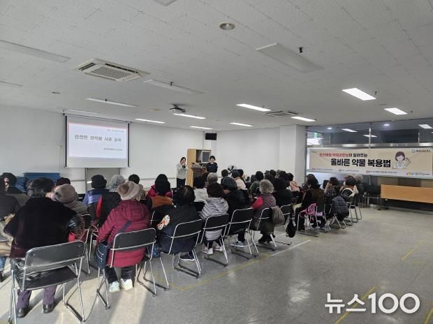 뉴스100 김동초 기자 | 포천시 소흘건강생활지원센터는 지난 18일 포천시 노인복지관 남부분관 대강당에서 만 65세 이상 어르신을 대상으로 ‘노년기 올바른 약물 복용 및 관리 교육’을 실시했다.