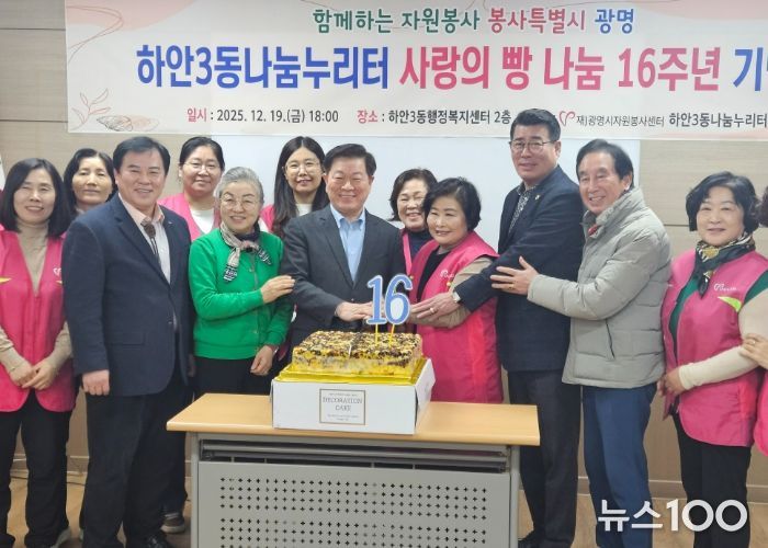 뉴스100 김동초 기자 | 광명시 하안3동 나눔누리터는 광명시자원봉사센터, 하안3동 행정복지센터와 함께 지난 19일 하안3동 행정복지센터 2층 회의실에서 ‘사랑의 빵 나눔’ 16주년 기념식을 개최했다.