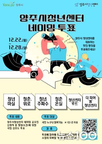 뉴스100 김동초 기자 | 양주시가 청년센터 이전 및 확대 운영을 앞두고 실시한 네이밍 공모전을 성공적으로 마무리하고, 국민투표를 통해 최종 명칭 선정을 위한 2차 심사를 진행한다.