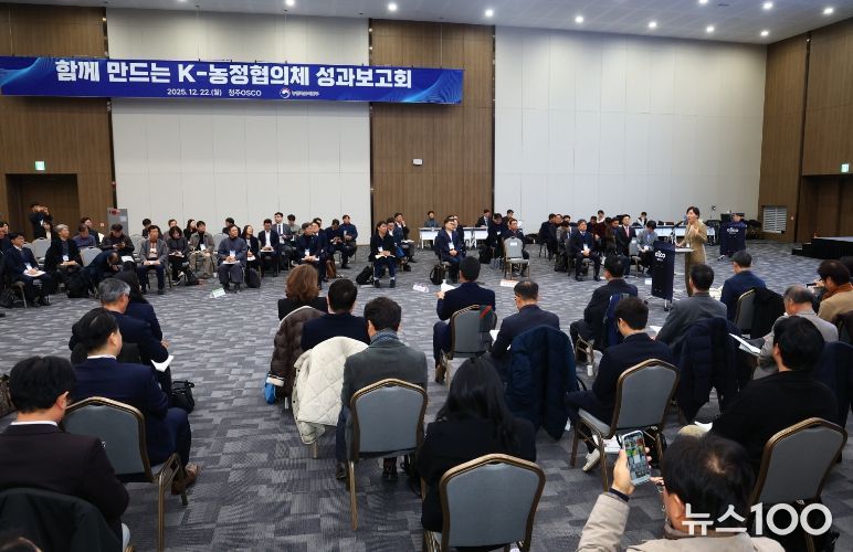 뉴스100 김동초 기자 | 농림축산식품부는 12월 22일 오후 청주오스코(OSCO)에서 '함께 만드는 K-농정협의체' 성과보고회를 개최했다. 이번 행사에는 K-농정협의체 공동대표인 송미령 농식품부 장관과 류진호 한국4-H청년농업인연합회 회장을 비롯한 협의체 위원 120여 명과 농어업농어촌특별위원회 김호 위원장을 포함한 관계자 30여 명 등 총 150여 명이 참석했다.