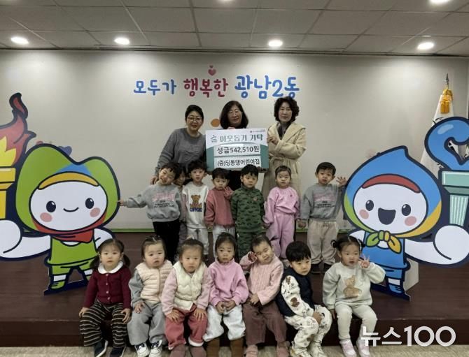 뉴스100 김동초 기자 | 딩동댕어린이집은 23일 광주시 광남2동 행정복지센터를 방문해 원아들이 직접 모은 성금 54만 2천510원을 기탁했다.