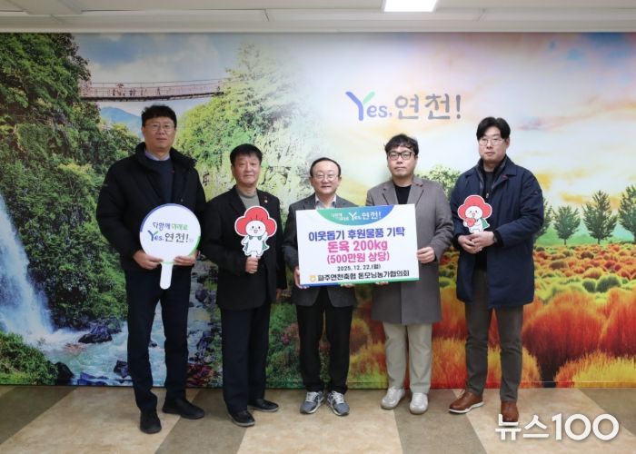 뉴스100 김동초 기자 | 파주연천축협 돈모닝농가협의회는 지난 22일 연천군청을 방문해 연천군 어려운 이웃을 위한 나눔 실천의 일환으로 돈육 200kg, 500만원 상당의 후원물품을 기탁했다.