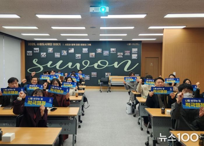 뉴스100 김동초 기자 | 수원특례시가 23일 더함파크에서 ‘2025년 수원시·공공기관 적극행정 심화교육 및 소통 간담회’를 열고 기관 간 협력 방안을 논의했다.