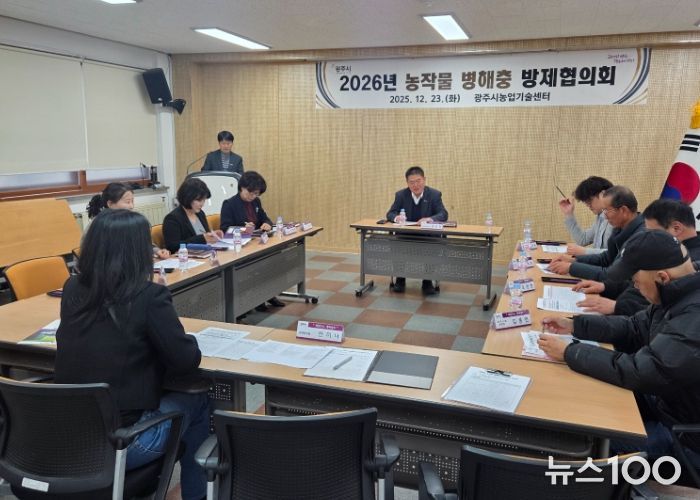 뉴스100 김동초 기자 | 광주시농업기술센터는 23일 행정기관, 농협, 농업인 단체 대표 등 관계자 11명이 참석한 가운데 농작물 병해충 방제협의회를 개최했다.