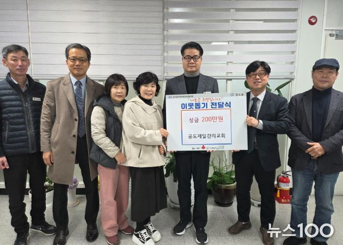 뉴스100 김동초 기자 | 공도제일감리교회는 12월 24일 지역사회의 어려운 이웃을 돕기 위해 공도읍에 기부금 200만원을 전달했다.