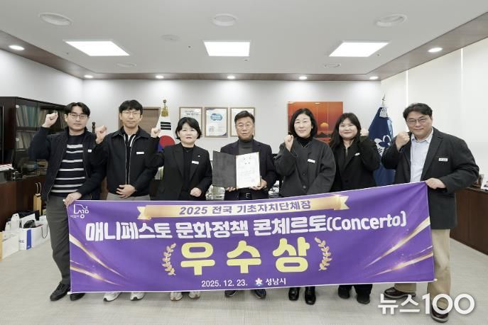 뉴스100 김동초 기자 | 성남시는 ‘2025 전국 기초자치단체장 매니페스토 문화정책 콘체르토(Concerto)’ 대회에서 신인 예술인 등용문인 ‘성남(SN) 탤런트’ 사업 성과를 인정받아 문화 활동 활성화 분야 우수상을 받았다고 26일 밝혔다.