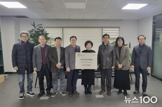 뉴스100 김동초 기자 | 지역사회 발전을 위해 모인 신천동 발전위원회에서 지난 12월 23일 신천동 취약계층 지원을 위한 후원금 300만 원을 전달했다.