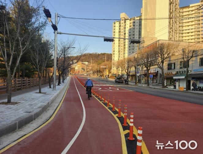 뉴스100 김동초 기자 | 수원특례시가 광교산로 교통 혼잡을 줄이기 위한 도로 확장 공사와 자전거도로 조성 공사를 마무리했다.