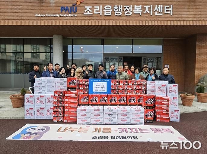 뉴스100 김동초 기자 | 파주시 조리읍 이장협의회는 연말을 맞아 지역사회 나눔 문화 확산과 복지 사각지대 해소를 위해 지난 23일 조리읍에 라면 150상자를 기탁했다.