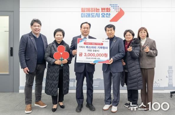 뉴스100 김동초 기자 | 오산시는 지난 24일 따스아리 기부천사로부터 저소득 취약계층 지원을 위한 후원금 300만 원을 기탁받았다고 밝혔다.