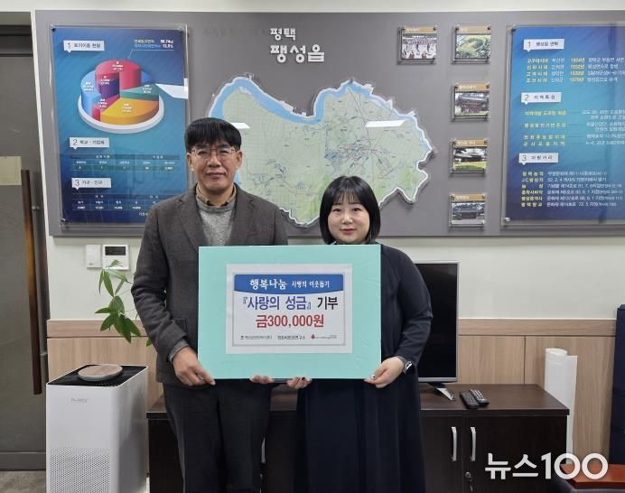 뉴스100 김동초 기자 | 경토리민요연구소의 박정은 대표는 지난 24일, 팽성읍 행정복지센터를 방문해 저소득 가구 지원을 위한 성금 30만 원을 전달했다.