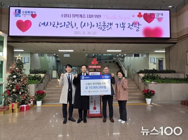 뉴스100 김동초 기자 | 더사랑의교회가 설립한 사회복지법인 ‘이음플랫’이 “취약계층 지원을 위해 사용해달라”며 26일 1000만 원을 수원시에 기부했다. 기부금은 사회복지공동모금회에 지정기탁 방식으로 수원시 취약계층 지원에 사용할 예정이다.