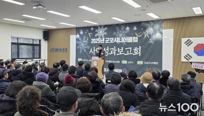 뉴스100 김동초 기자 | 군포시니어클럽은 12월 23일 군포시니어클럽 대강당에서 하은호 군포시장, 김귀근 군포시의회 의장 및 시의원 등 주요 내빈과 노인일자리 참여자 170여명이 참석한 가운데, 성과보고회를 개최했다.