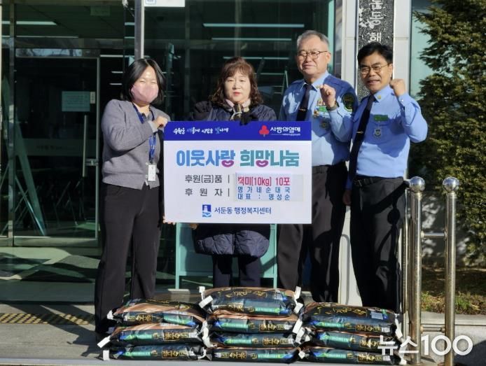 뉴스100 김동초 기자 | 수원시 권선구 서둔동 행정복지센터는 지난 26일, 명가네순대국에서 연말을 맞이하여 어려운 이웃에게 전해달라며 백미(10kg) 10포를 전달 받았다고 밝혔다.
