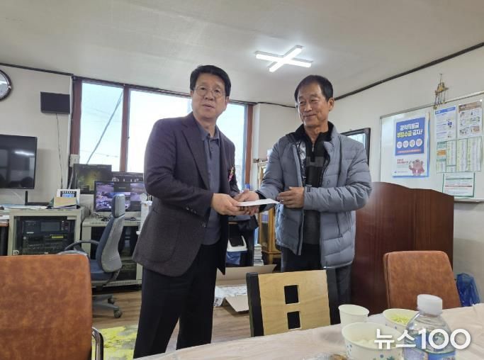 뉴스100 김동초 기자 | 점동면은 뇌곡2리 이장 정명섭 씨가 지난 26일, 연말을 맞아 어려운 이웃들을 위해 이웃돕기 성금 100만원을 기탁했다고 밝혔다.
