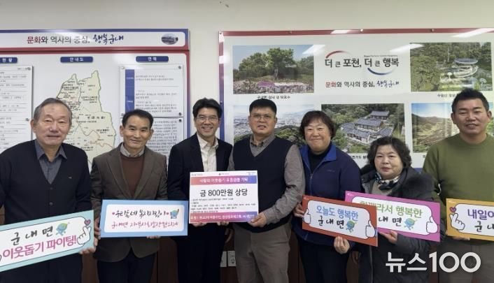 뉴스100 김동초 기자 | 포천시 군내면 행정복지센터는 지난 26일 유교2리 마을주민과 청량동축복교회, 김상호 ㈜지앤인 대표가 지역 내 어려운 이웃을 돕기 위한 성금과 쌀을 사회복지공동모금회를 통해 기탁했다고 밝혔다.